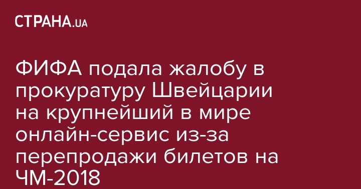 ФИФА подала жалобу в прокуратуру Швейцарии на крупнейший в мире онлайн-сервис из-за перепродажи билетов на ЧМ-2018