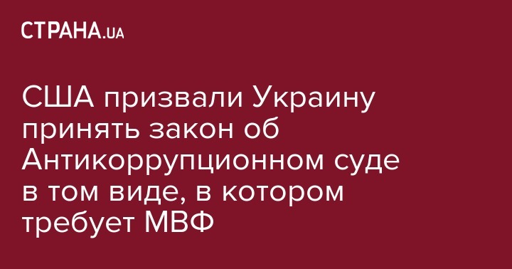 "Соединенные Штаты хотят четко заявить, что законодательство, устанавливающее суд, должно удовлетворять МВФ, который обеспечивает существенную финансовую поддержку украинского правительства. Поэтому мы призываем украинское правительство обсудить соответствующие законодательные предложения непосредственно с МВФ и принять законопроект, который соответствует требованиям МВФ", - говорится в заявлении представителя Государственного департамента США Хизер Науерт во вторник.
