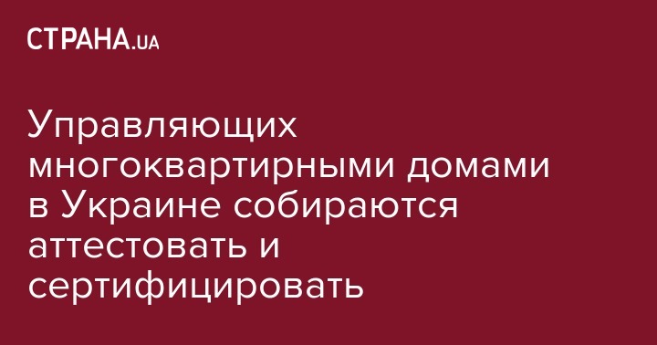 Управляющих многоквартирными домами в Украине собираются аттестовать и сертифицировать