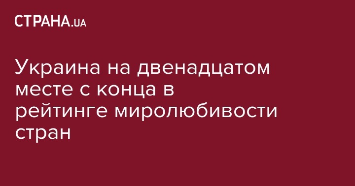 В этом году Украина поднялась на 2 строчки, в прошлом году она была в наименее миролюбивой десятке.