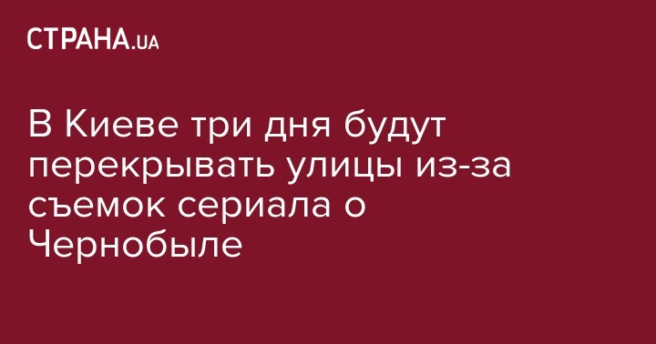 С 8 по 10 июня в центре Киева и еще в двух районах перекроют несколько улиц из-за съемок сериала о Чернобыле. Об этом в соцсети сообщила пресс-служба Департамента транспортной инфраструктуры.