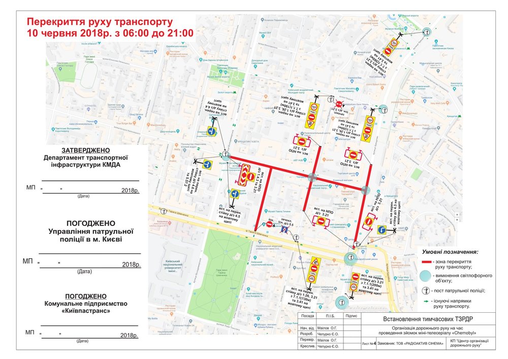 В сообщении говорится, что из-за съемок в Киеве 8 июня с 11:30 до 15:30 перекроют: