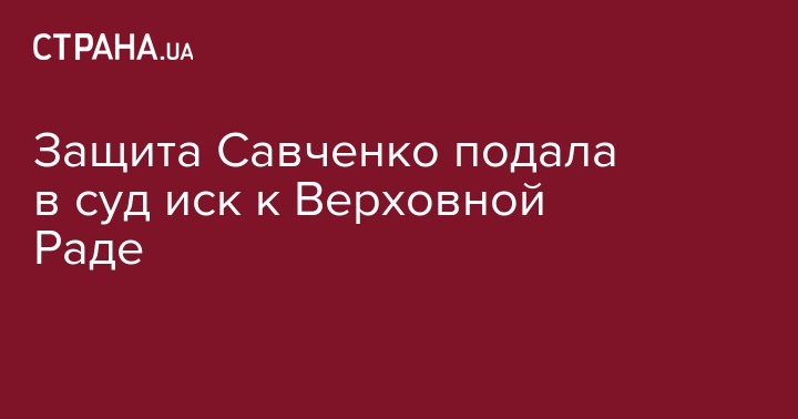 "Стороной защиты народного депутата Надежды Савченко подан административный иск "о признании противоправной бездеятельности субъекта властных полномочий и признании противоправным и отмене решений. Ответчиком выступает Верховная Рада", - говорится в сообщении пресс-службы нардепа.
