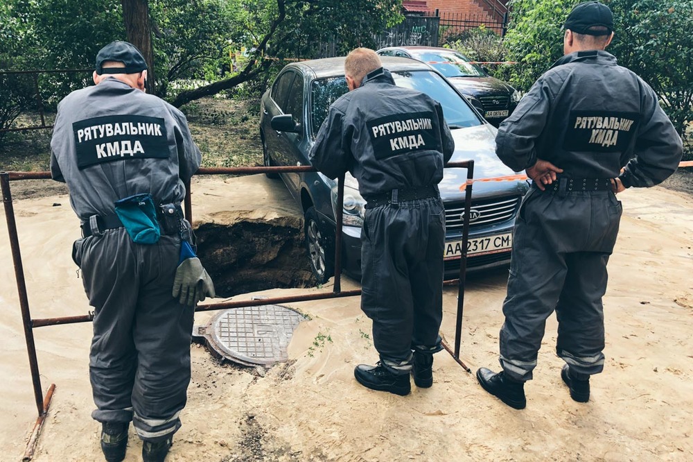 В четверг, 7 июня, в Киеве на улице Бажова прорвало трубу и вымыло грунт. Автомобиль, который стоял рядом, повис над ямой. Инцидент случился около 11:00, сообщает "Информатор".