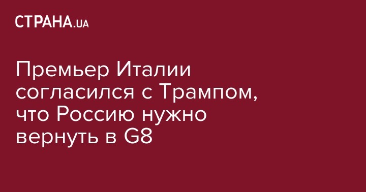 Сегодня, 8 июня новый премьер-министр Италии Джузеппе Конте поддержал позицию президента США Дональда Трампа, который выступил за то, чтобы Россия снова присоединилась к встречам "Большой семерки" (G7).