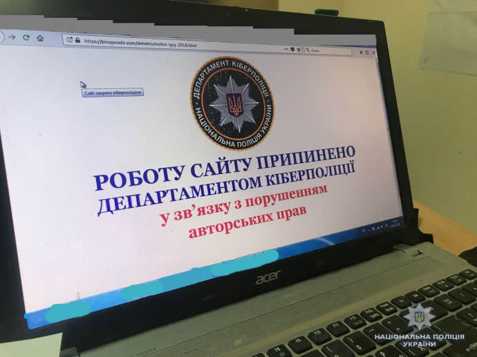 Сотрудникики депаратамента Киберполиции прекратили работу пиратского сайта "kinoprostir.com" и разоблачили его 31-летнего администратора. Среди прочего сайт транслировал украинский фильм "Киборги", права на который принадлежат компаниям, которых представляет Украинская антипиратская ассоциация.