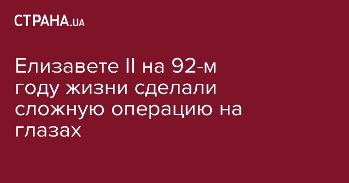 Королева Великобритании Елизавета II в 92 года перенесла операцию на глазах. Об этом сообщает Reuters.