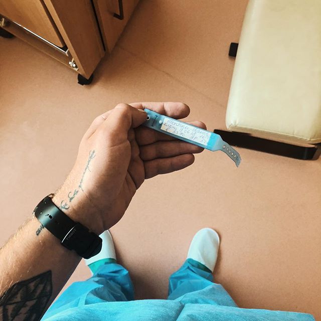 Муж Шоптенко опубликовал фото, на котором держит бирку новорожденного ребенка голубого цвета.