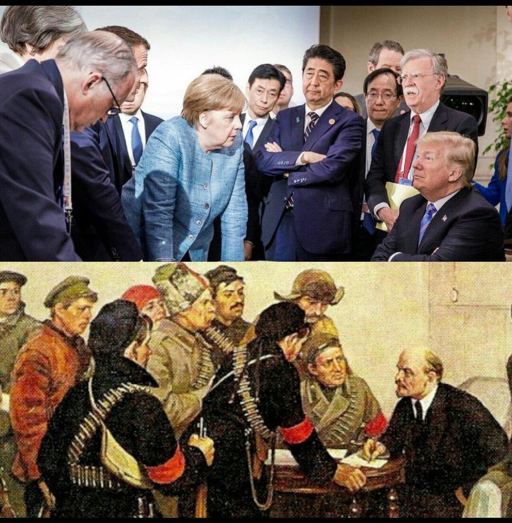 Саммит, на котором сделано фото, проходил в канадской провинции Квебек и закончился провально. Трамп покинул его еще до окончания и даже не подписал итоговое коммьюнике. Между президентом США и европейскими лидерами возникло рекордное количество разногласий.