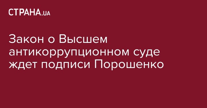 В администрацию президента Украины поступил закон Украины "О Высшем антикоррупционном суде", который был инициирован главой государства и поддержан 315 депутатами Верховной Рады 7 июня.
