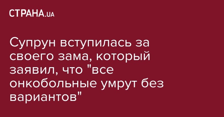 Супрун вступилась за своего зама, который заявил, что "все онкобольные умрут без вариантов"