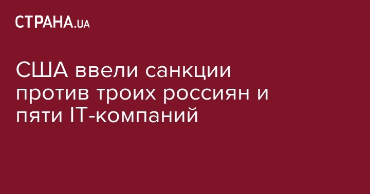Министерство финансов США сообщило о введении санкций против троих граждан России и пяти компаний, которые ведомство считает связанными с ФСБ. Об этом сообщается на сайте министерства.