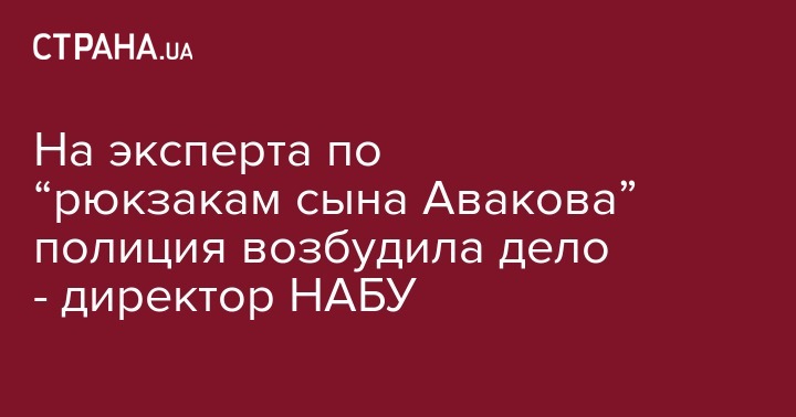 На эксперта по “рюкзакам сына Авакова” полиция возбудила дело - директор НАБУ