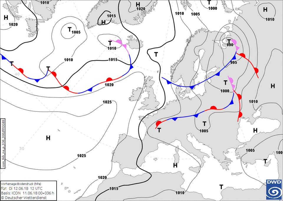 Синоптик Наталья Диденко показала карту северного циклона с сетью атмосферных фронтов.