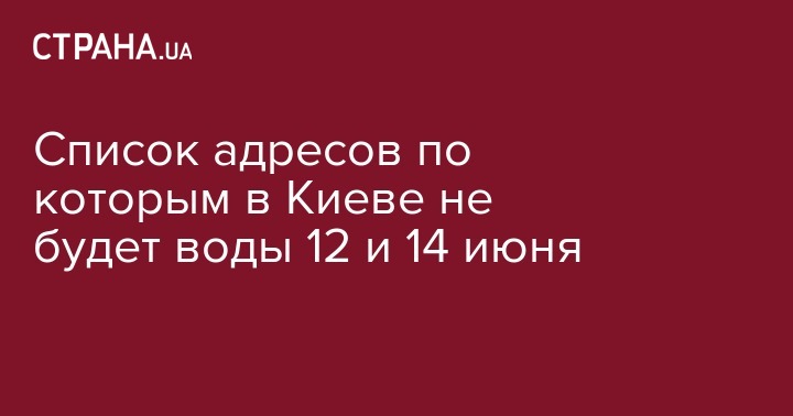 Список адресов по которым в Киеве не будет воды 12 и 14 июня