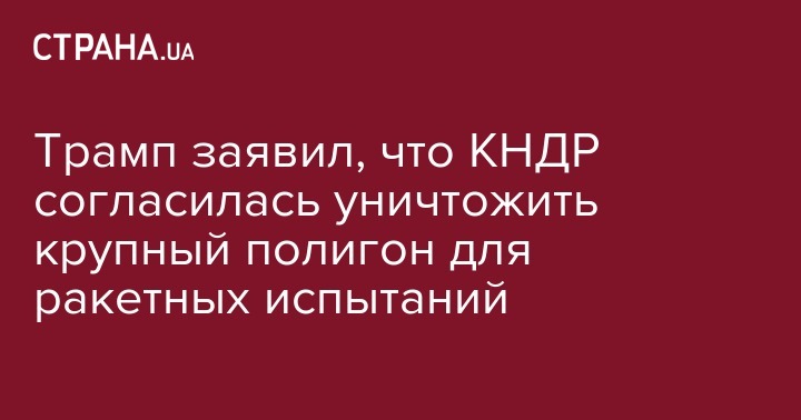 Трамп заявил, что КНДР согласилась уничтожить крупный полигон для ракетных испытаний