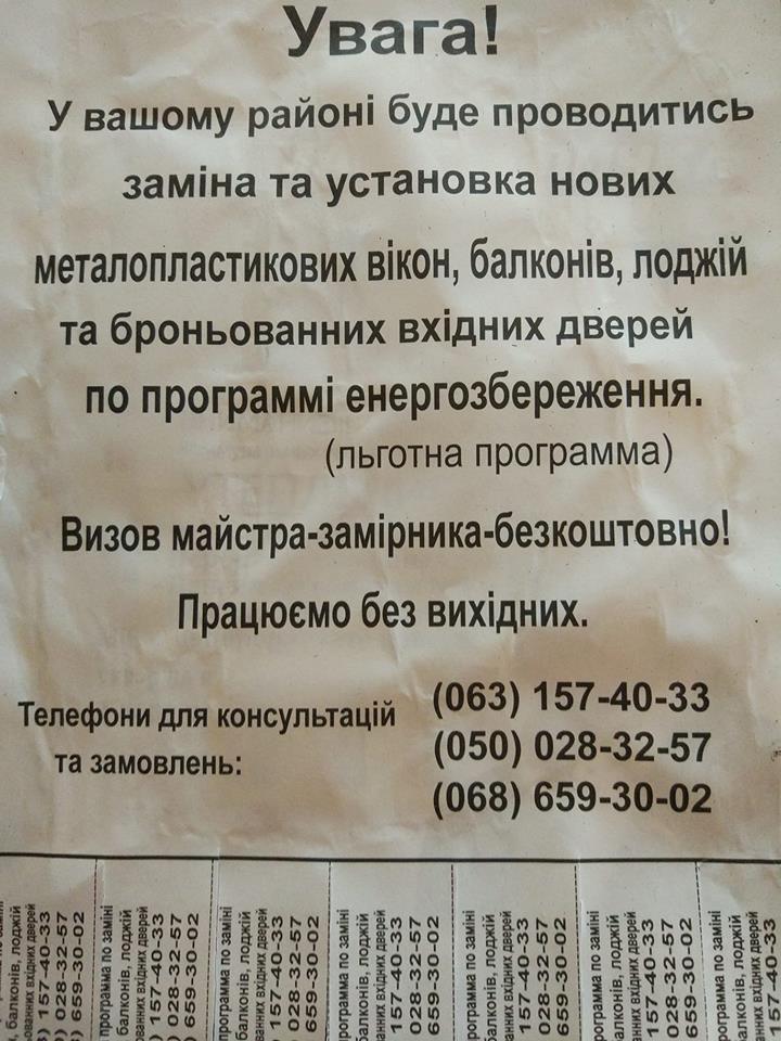 В столице появились объявления о замене и установке металлопластиковых окон, балконов и дверей по льготной программе. Однако доверять таким объявлениям не стоит – их развешивают мошенники.