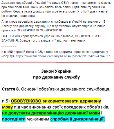 "Государственные служащие в Украине (не только СБУ) никакого понятия не имеют о своих обязанностях. Они собирают какие-то бумажки для устройства на работу, берут какую-то справку об украинском языке (кто им ее дает), даже не зная, зачем она.