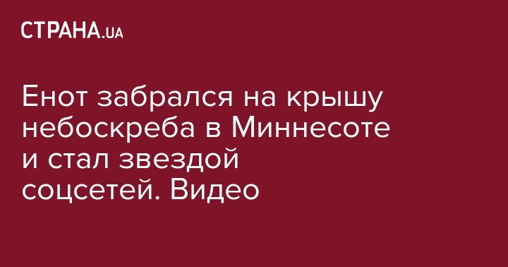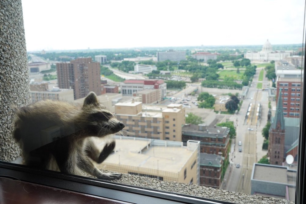 В городе Сент-Пол в Миннесоте енот залез на крышу 23-этажного здания. Животное карабкалось вверх по отвесной бетонной стене здания с раннего утра до ночи, пока его снимали на камеры мобильных телефонов местные жители. Об этом сообщает ВВС.