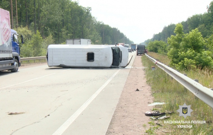 Под Житомиром автобус лег на бок и перегородил трассу Киев-Чоп