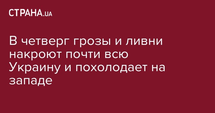 В западных областях синоптики прогнозируют сильные дожди с грозами, ночью температура снизится до +12-14°С, а днем ​​прогреется до +19-21°C.