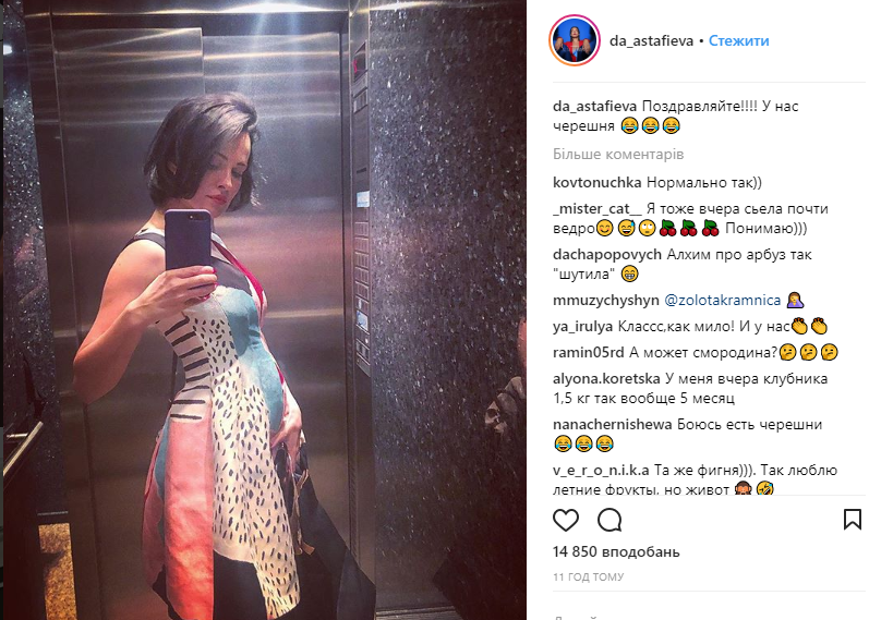"Поздравляйте! У нас черешня", - говорится в подписи Астафьевой под фото.