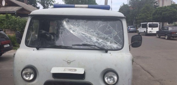В результате нападения были повреждены два служебных автомобиля, а двое полицейских получили ушибы и ссадины.