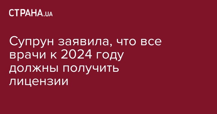 Министерство здравоохранения Украины представило систему профессионального лицензирования врачей. До 2024 все врачи в Украине получат профессиональные лицензии. Об этом на брифинге сообщила и.о. министра здравоохранения Ульяна Супрун.