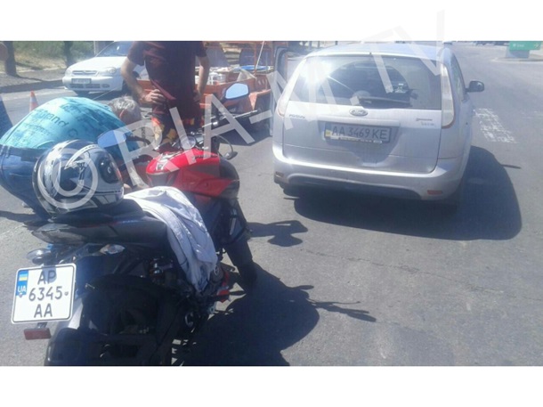 На выезде из города Мелитополя Запорожской области в пятницу, 15 июня, столкнулись автомобиль съемочной группы ТРК Украина и мотоциклист.