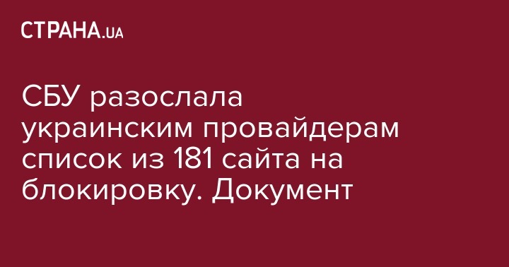 СБУ разослала провайдерам письмо, в котором требует блокировки почти двухсот интернет-ресурсов.