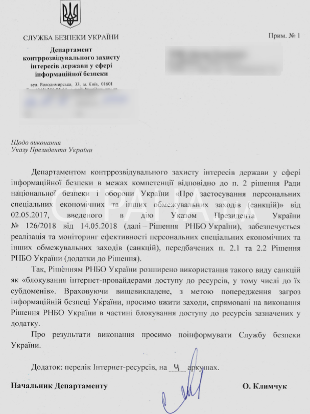 Список новых запрещенных в Украине сайтов занял четыре страницы. Документ оказался в распоряжении "Страны".