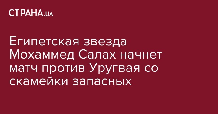 Лидер сборной Египта Мохаммед Салах, который получил травму в киевском финале Лиги Чемпионов, не выйдет в стартовом составе "фараонов" в  поединке группы "А" ЧМ-2018 против Уругвая.