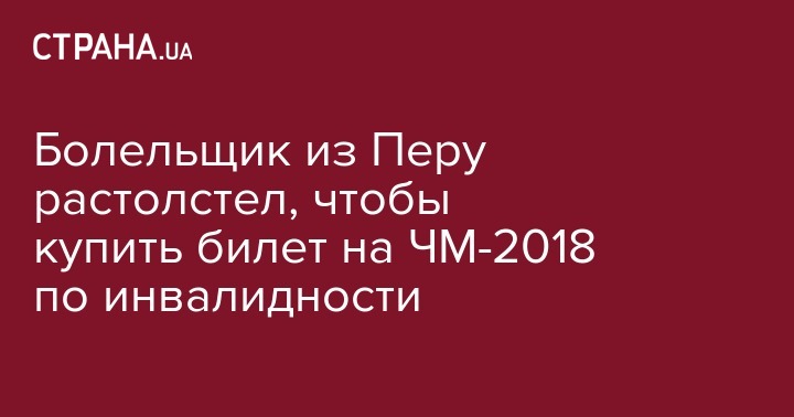 Болельщик сборной Перу пошел на крайние меры, чтобы воочию поболеть за свою любимую команду на чемпионате мира 2018 года в России. Для этого он придумал хитрый план, пожертвовав своим здоровьем – за три месяца до старта ЧМ-2018 он набрал 25 лишних килограмм и добился статуса человека с инвалидностью, что позволило ему приобрести билет специальной категории, передает infobae.com.