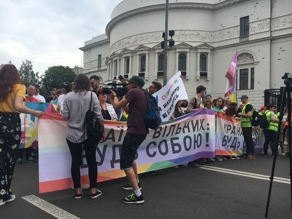 При этом шествие длилось всего 20 минут - примерно столько же, сколько и раньше. Это объясняется тем, что ЛБГТ-активистов в Украине приходится усиленно охранять - каждый год на таких мероприятиях их пытаются избить.