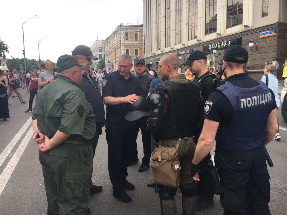 09:27  Внутри периметра, где будет двигаться колонна ЛБГТ, собрались все полицейские начальники - глава Нацполиции Князев, его зам Яровой и начальник столичного главка Крищенко.