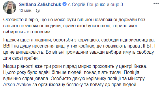 Потому что свободные граждане всегда будут выбирать свободу для своей страны", - пишет в Facebook нардеп Светлана Залищук.
