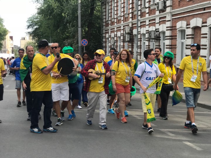 Но с точки зрения атмосферы на и особенно вокруг стадионов - это фантастика! Я никогда не испытывал таких ощущений. Просто тотальный праздник! Все дружелюбны, готовы помогать и угощать. Пляшут и поют. Латиноамериканцы устраивают настоящие концерты.