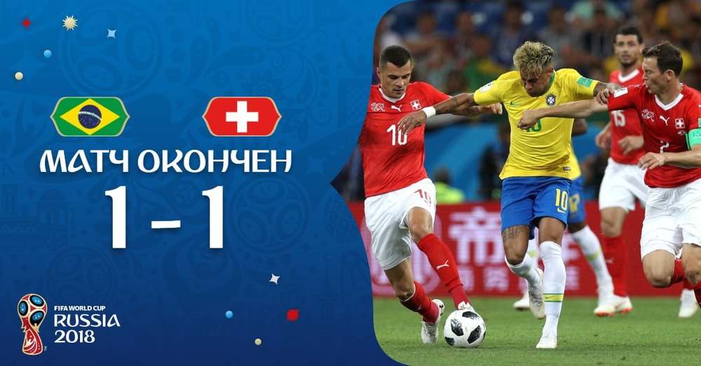 22.59 Бразилия показала, как можно проиграть, сыграв в ничью. Болельщики сборной Бразилии в трауре, болельщики сборной Швейцарии ликуют.