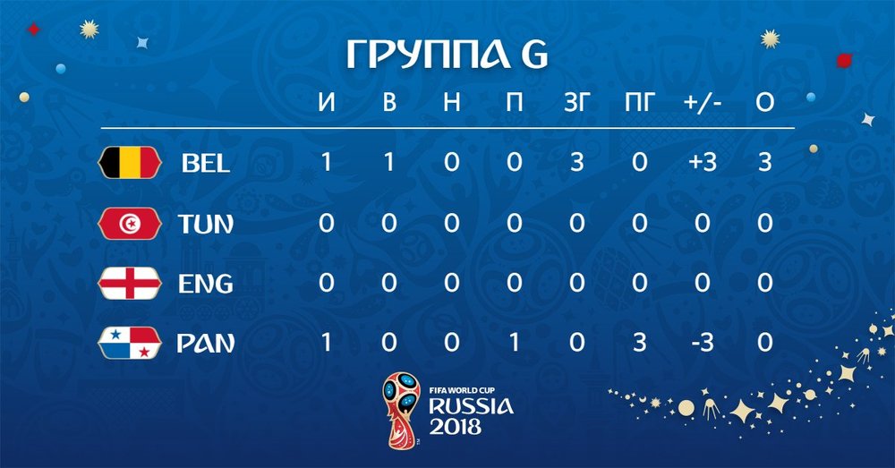 23.12 Положение команд в весьма непростой группе G, где лидерами стали футболисты из Бельгии, а сборная Англии вышла на второе место.