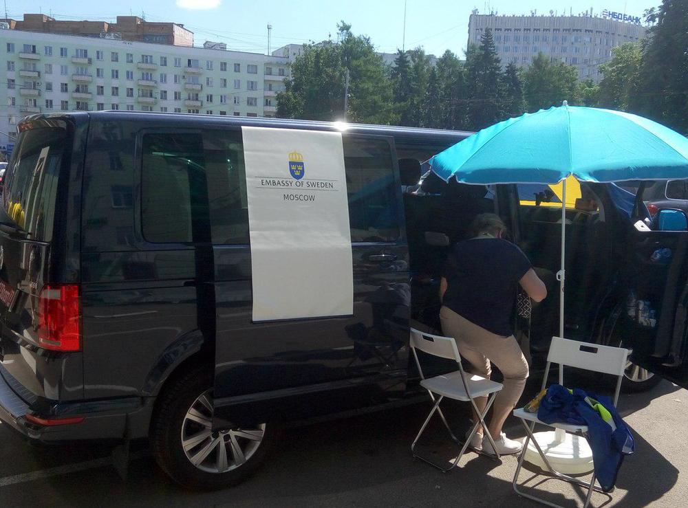 16.02 Это передвижное представительство шведского посольства из Москвы остановилось в Нижнем Новгороде. Они помогают согражданам в случае утери документов, сообщает корреспондент "Страны" с места событий.