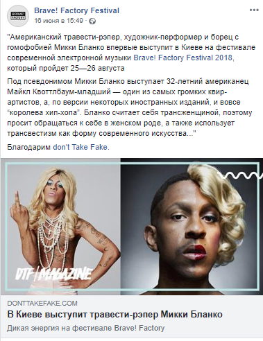 В Киеве, на фестивале электромузыки, впервые выступит известный рэпер-трансвестит