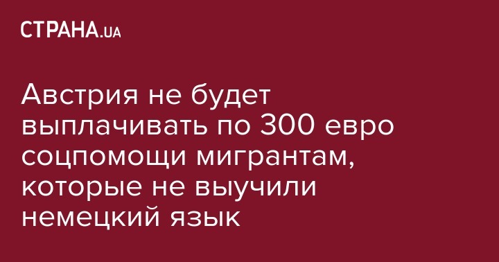 Правительство Австрийской республики заявил о намерениях ввести ограничения на ежемесячные социальные выплаты для мигрантов, которые не знают немецкого языка на уровне 563 евро.