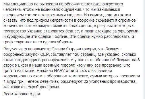 При этом журнал подготовил новое расследование о коррупции под заголовком Миллионы на Войне.
