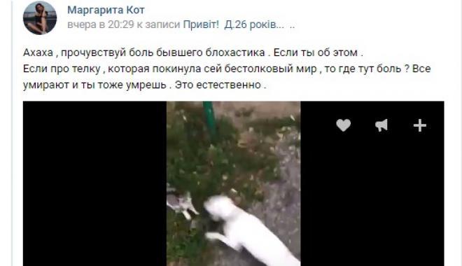 В конце октября 2016 года несовершеннолетняя на тот момент харьковчанка выложила в соцсети "ВКонтакте" видеозапись, на которой ее бультерьер, убивает котенка.