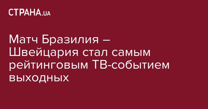 Самым рейтинговым матчем выходных, а также самым рейтинговым событием выходных на украинском телевидении среди зрителей 18-54 в крупных городах стал воскресный матч Бразилия – Швейцария, его доля составила 15,5%. По аудитории 18+ в крупных городах матч собрал 16,4% зрителей, а в Украине по данной аудитории доля составила 14,2%.