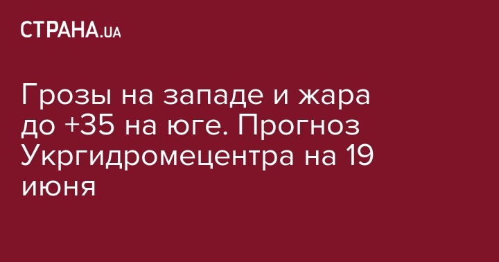 Во вторник, 19 июня в западных и северных областях Украины местами небольшой кратковременный дождь, гроза; на остальной территории без осадков, днем до +35°.