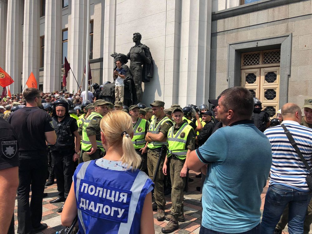 Ситуация накалена до предела - митингующие прорвали оцепление полиции и заблокировали выходы из парламента и требуют встречи со спикером Андреем Парубием.