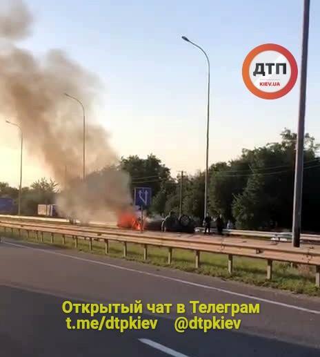 В понедельник, 19 июня на 180-м километре трассы Киев-Харьков "летевшая" на большой скорости легковая машина Audi врезалась в отбойник и загорелась.
