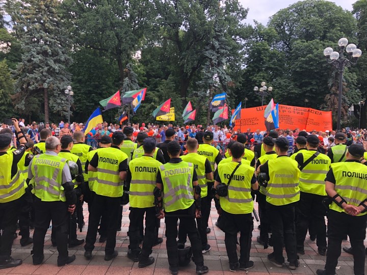 Шахтеров и афганцев полиция вытеснила за забор перед Радой