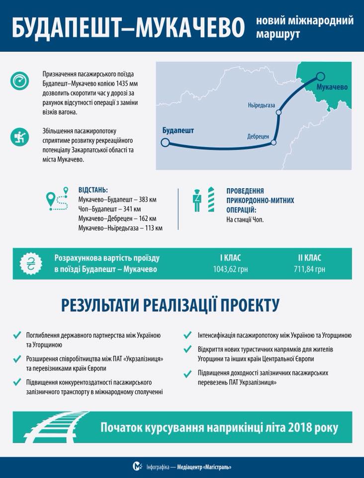 Напомним, в мае Кравцов отмечал, что ПАО "Укрзализныця" совместно с венгерскими государственными железными дорогами MÁV-START планирует запустить прямой поезд по маршруту Мукачево - Будапешт.